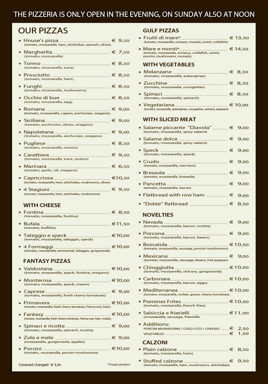 LA PIZZERIA E' APERTA SOLO LA SERA, DOMENICA ANCHE A MEZZOGIORNO